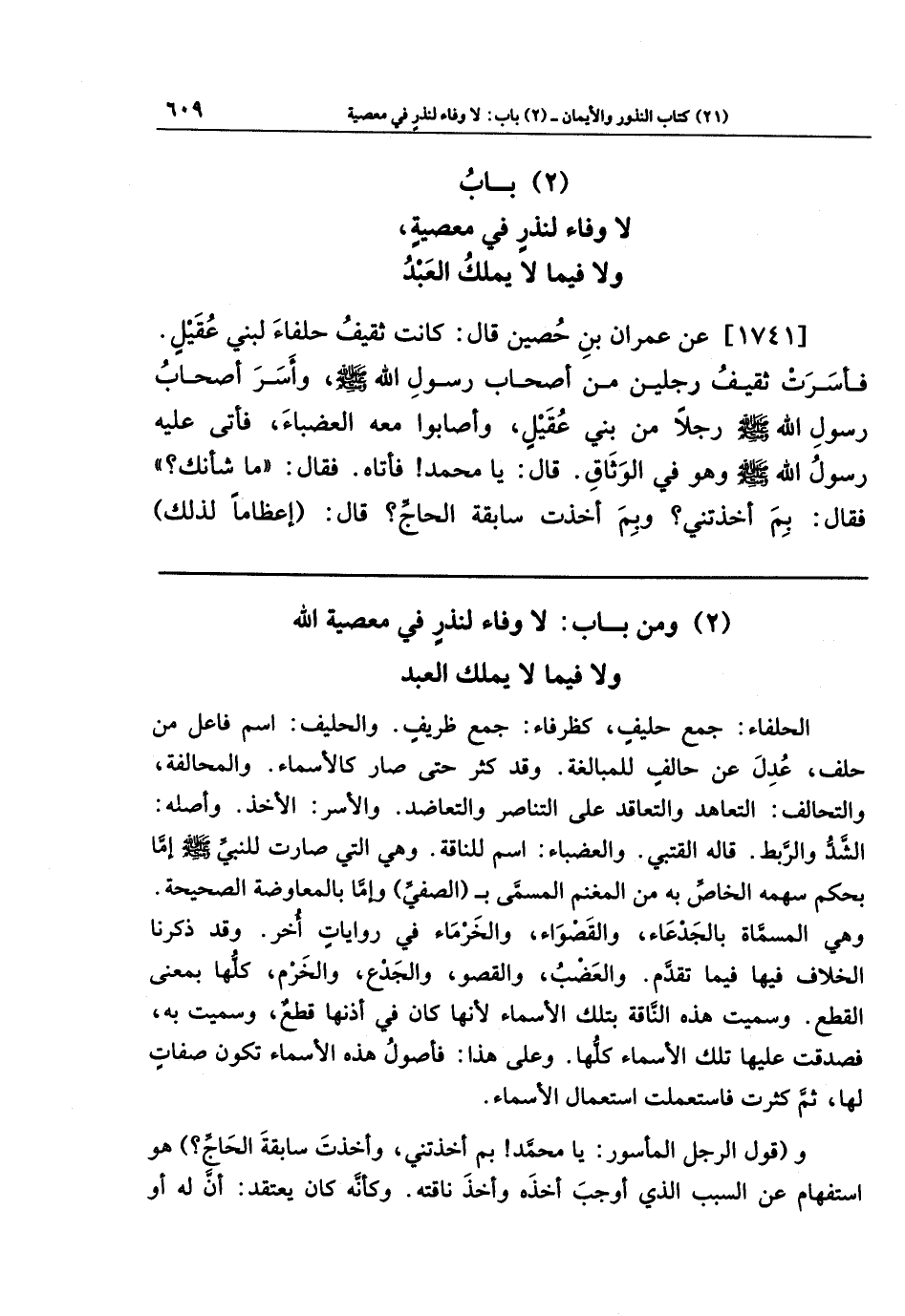 (2) باب لا وفاء لنذرٍ في معصية، ولا فيما لا يملك العبد