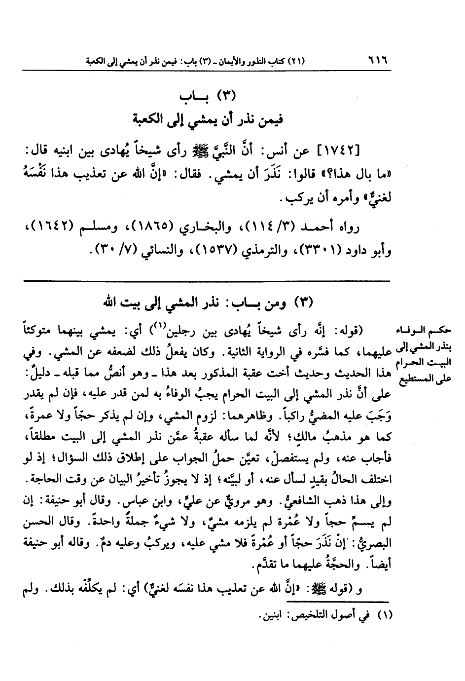 (3) باب فيمن نذر أن يمشي إلى الكعبة