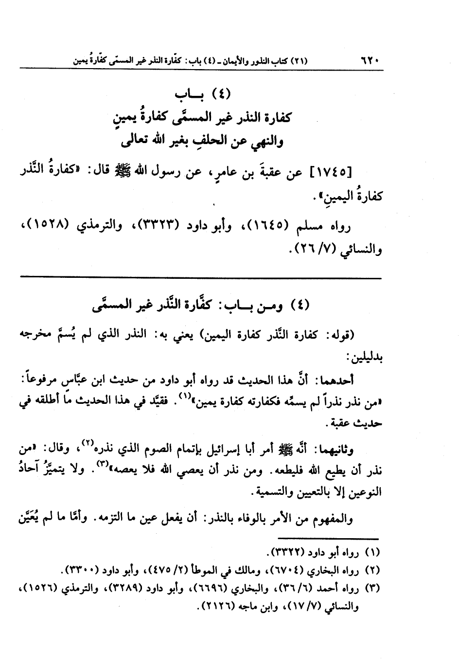 (4) باب كفارة النذر غير المسمى كفارة يمين، والنهي عن الحلف بغير الله تعالى