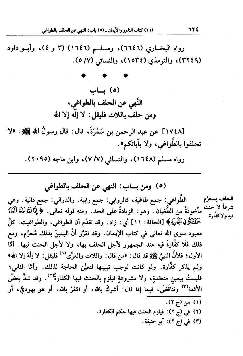(5) ومن باب: النهي عن الحلف بالطواغي