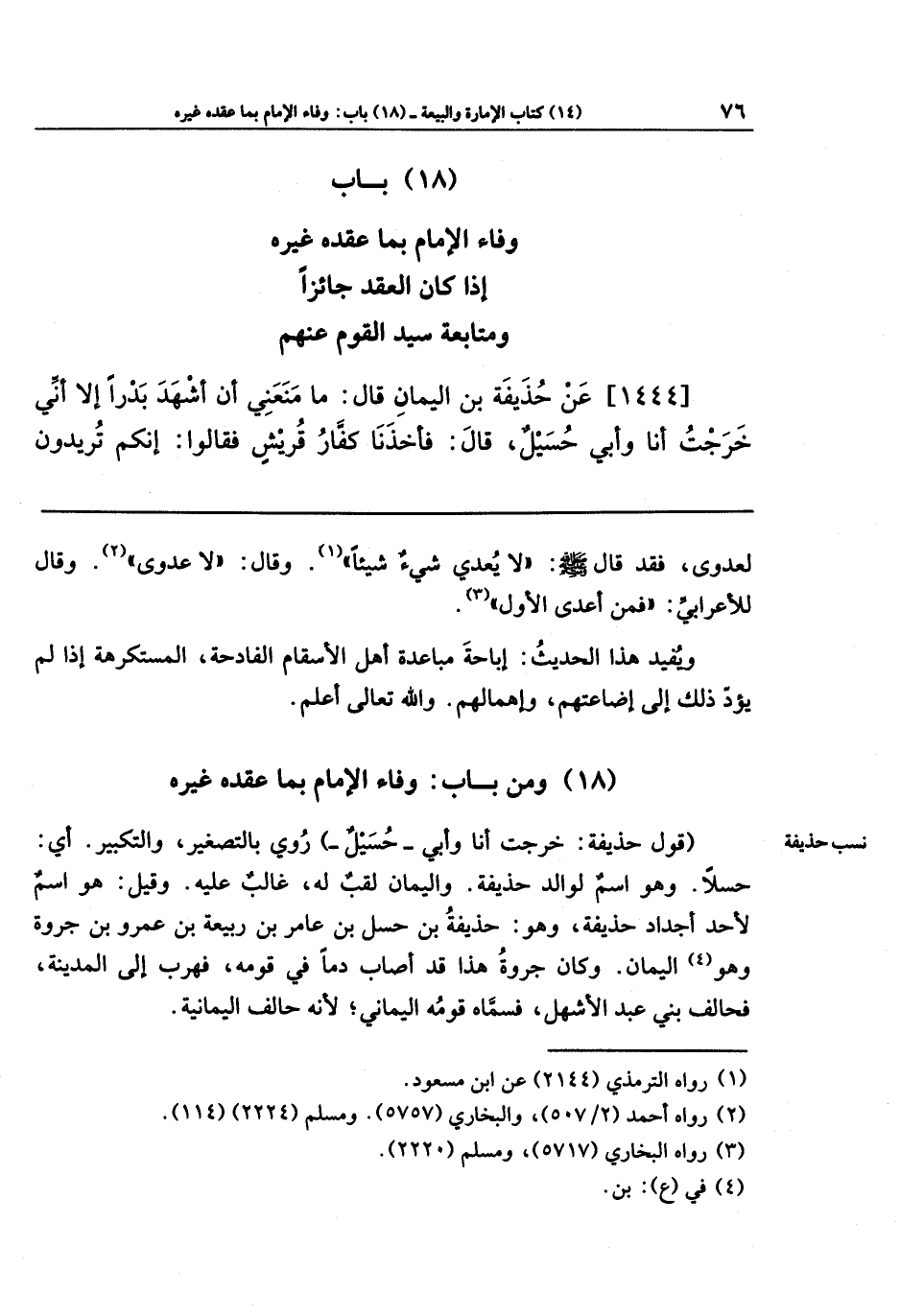 (18) باب وفاء الإمام بما عقده غيره إذا كان العقد جائزا ومتابعة سيد القوم عنهم