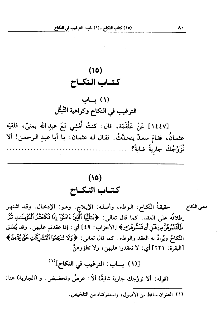(1) باب الترغيب في النكاح وكراهية التبتل
