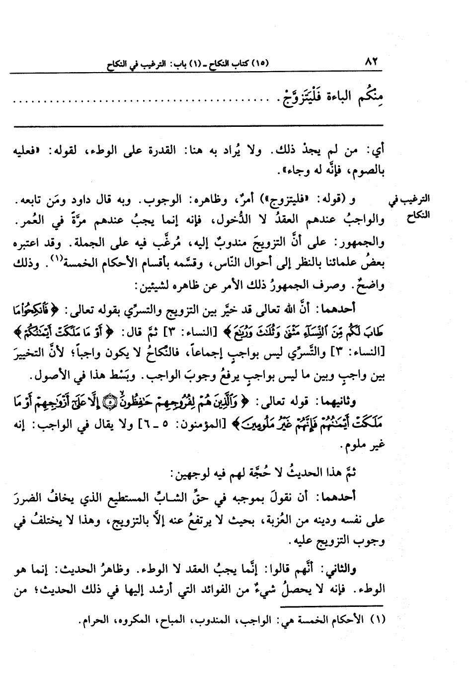 (¬1) الأحكام الخمسة هي: الواجب، المندوب، المباح، المكروه، الحرام.