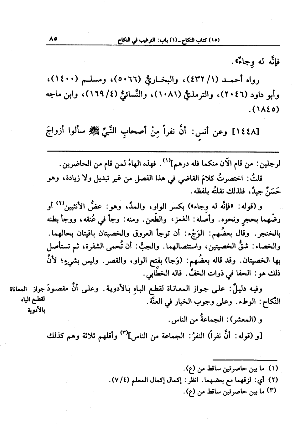 [1448] وعَن أَنَسٍ أَنَّ نَفَرًا مِن أَصحَابِ النَّبِيِّ صَلَّى اللَّهُ عَلَيهِ وَسَلَّمَ سَأَلُوا أَزوَاجَ