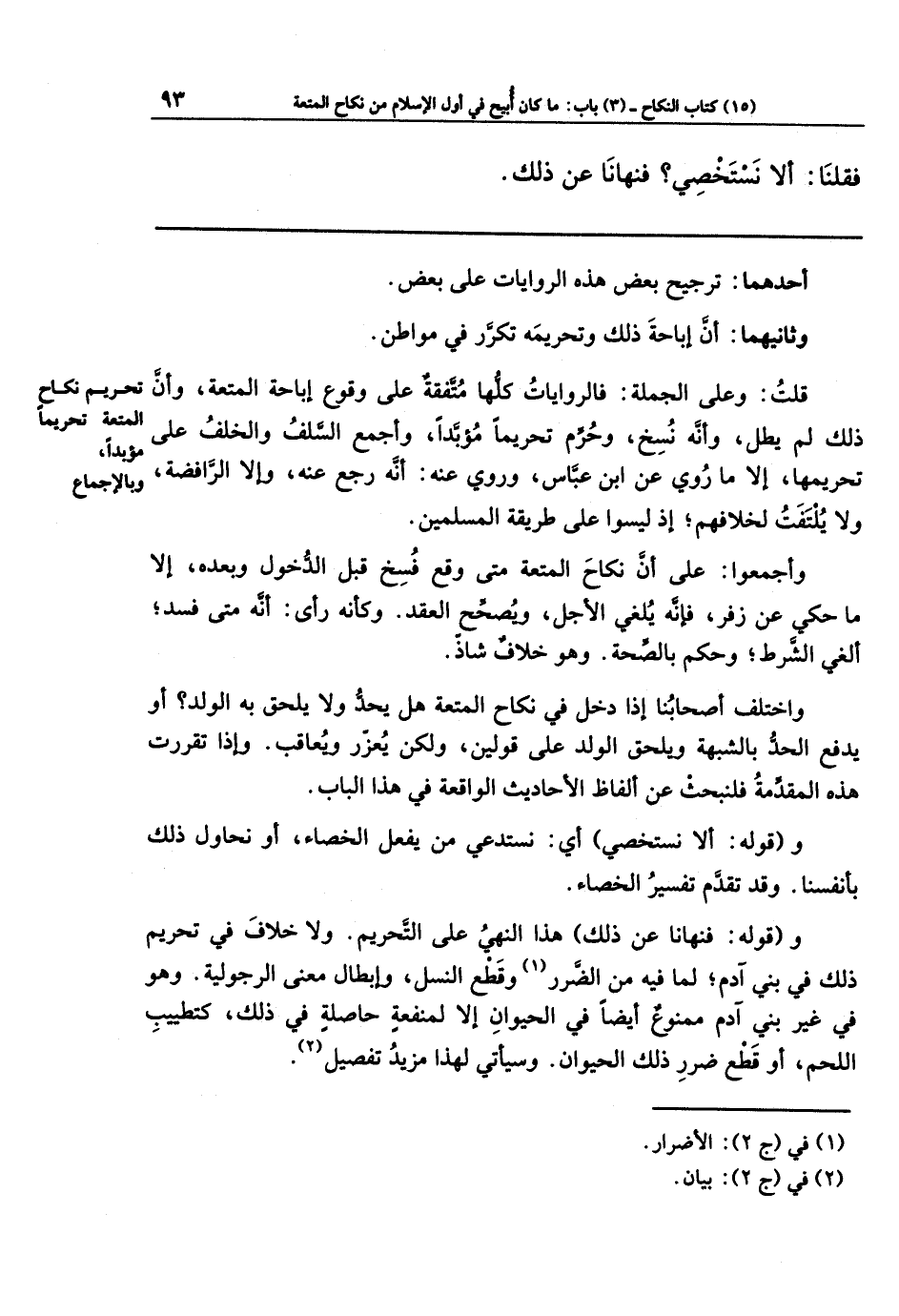 واختلف أصحابنا إذا دخل في نكاح المتعة هل يُحَدُّ ولا يُلحَقُ به الولد؟ أو يُدفَعُ الحَدُّ بالشبهة، ويُلحَقُ الولدُ؟ على قولين، ولكن يُعَزَّر ويُعاقب. وإذا تقررت هذه المقدِّمة فلنبحث عن ألفاظ الأحاديث الواقعة في هذا الباب.