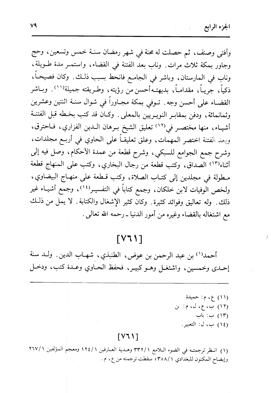 761 - أَحْمد بن عبد الرَّحْمَن بن عوض الطنبذي شهَاب الدَّين ولد سنة إِحْدَى وَخمسين واشتغل وَهُوَ كَبِير فحفظ الْحَاوِي وعدة كتب وَدخل