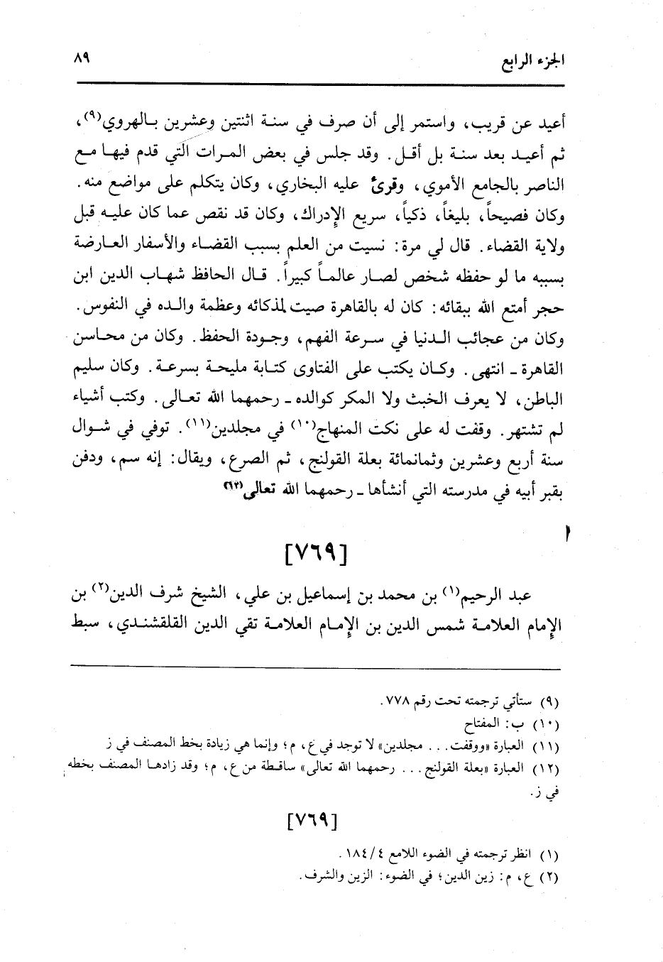 769 - عبد الرَّحِيم بن مُحَمَّد بن إِسْمَاعِيل بن عَليّ الشَّيْخ شرف الدَّين بن الإِمَام الْعَلامَة شمس الدَّين بن الإِمَام الْعَلامَة تَقِيّ الدَّين القلقشندي سبط