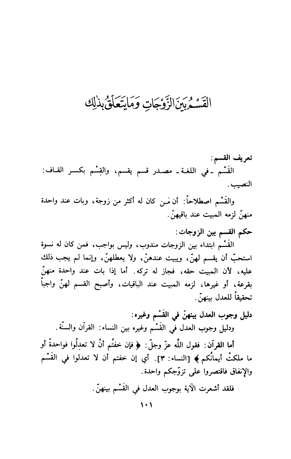 ودليل وجوب العدل في القَسْم وغيره بين النساء: القرآن والسنّة.
