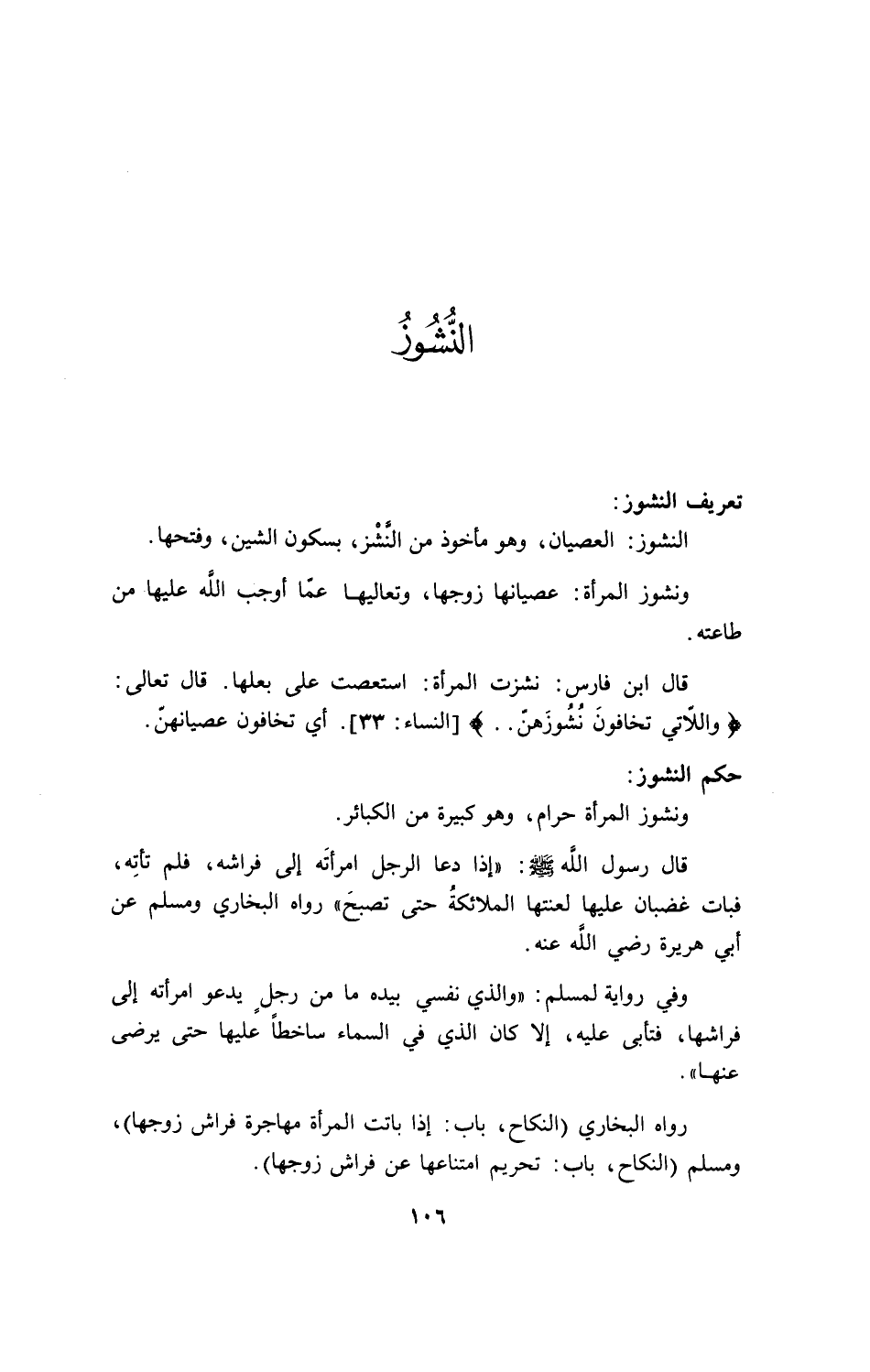 النشوز: العصيان، وهو مأخوذ من النِّشْز، بسكون الشين، وفتحها.