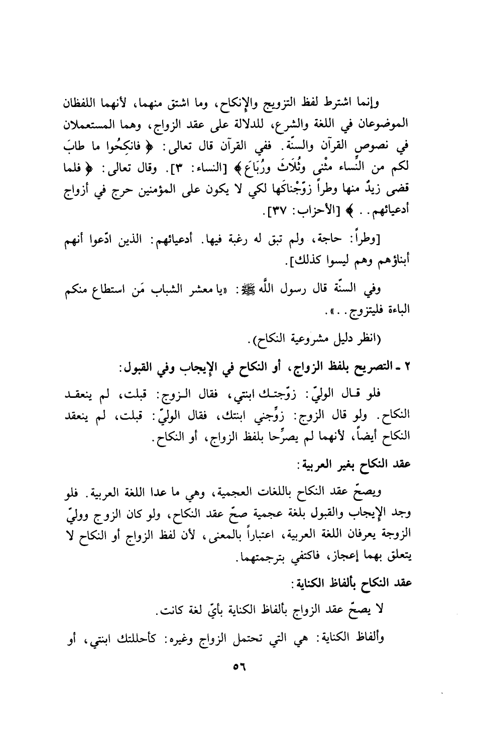 وألفاظ الكناية: هي التي تحتمل الزواج وغيره: كأحللتك ابنتي، أو