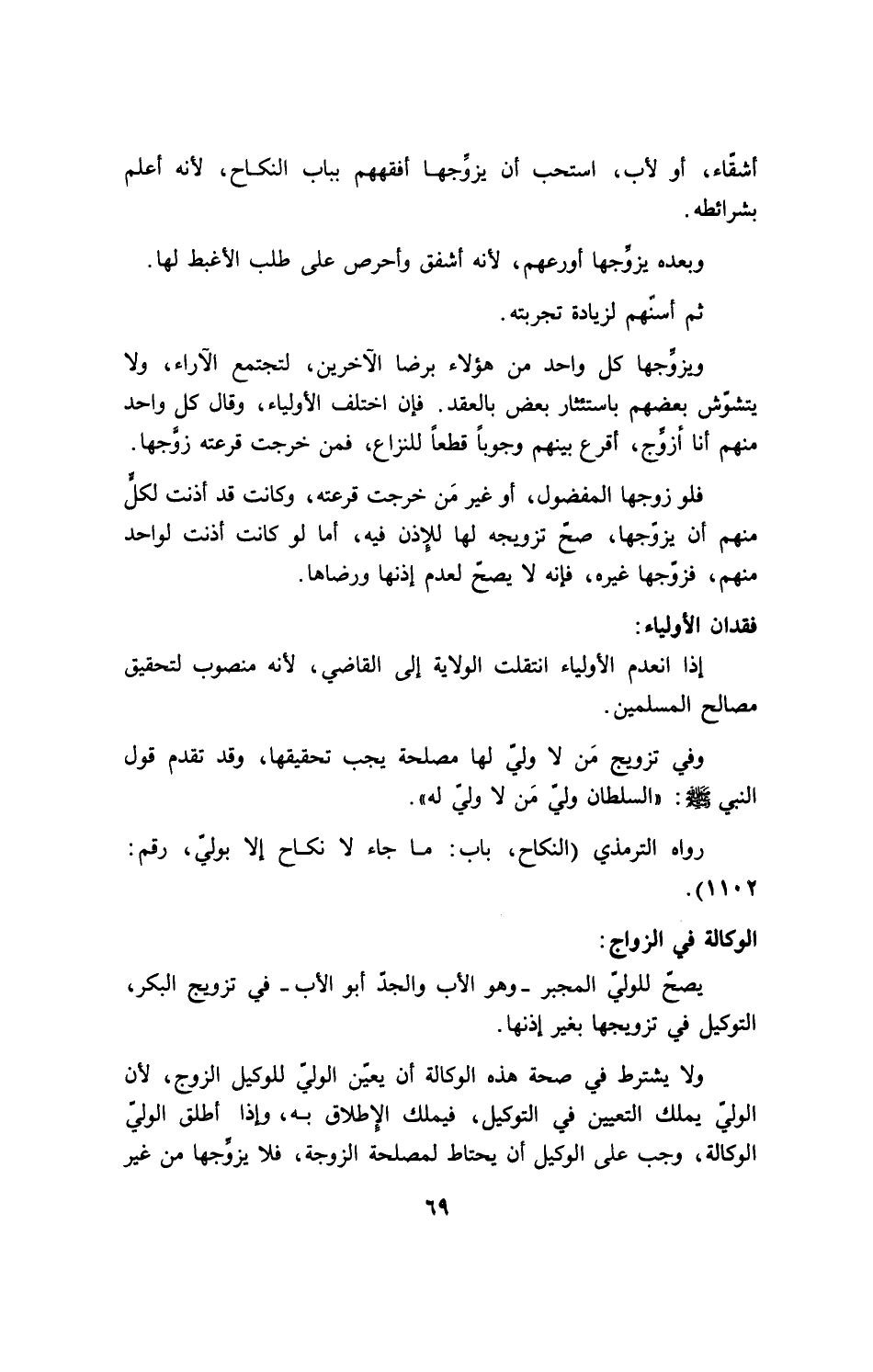 وفي تزويج مَن لا ولي لها مصلحة يجب تحقيقها، وقد تقدم قول النبي - صلى الله عليه وسلم -: " السلطان ولي من لا ولي له ".