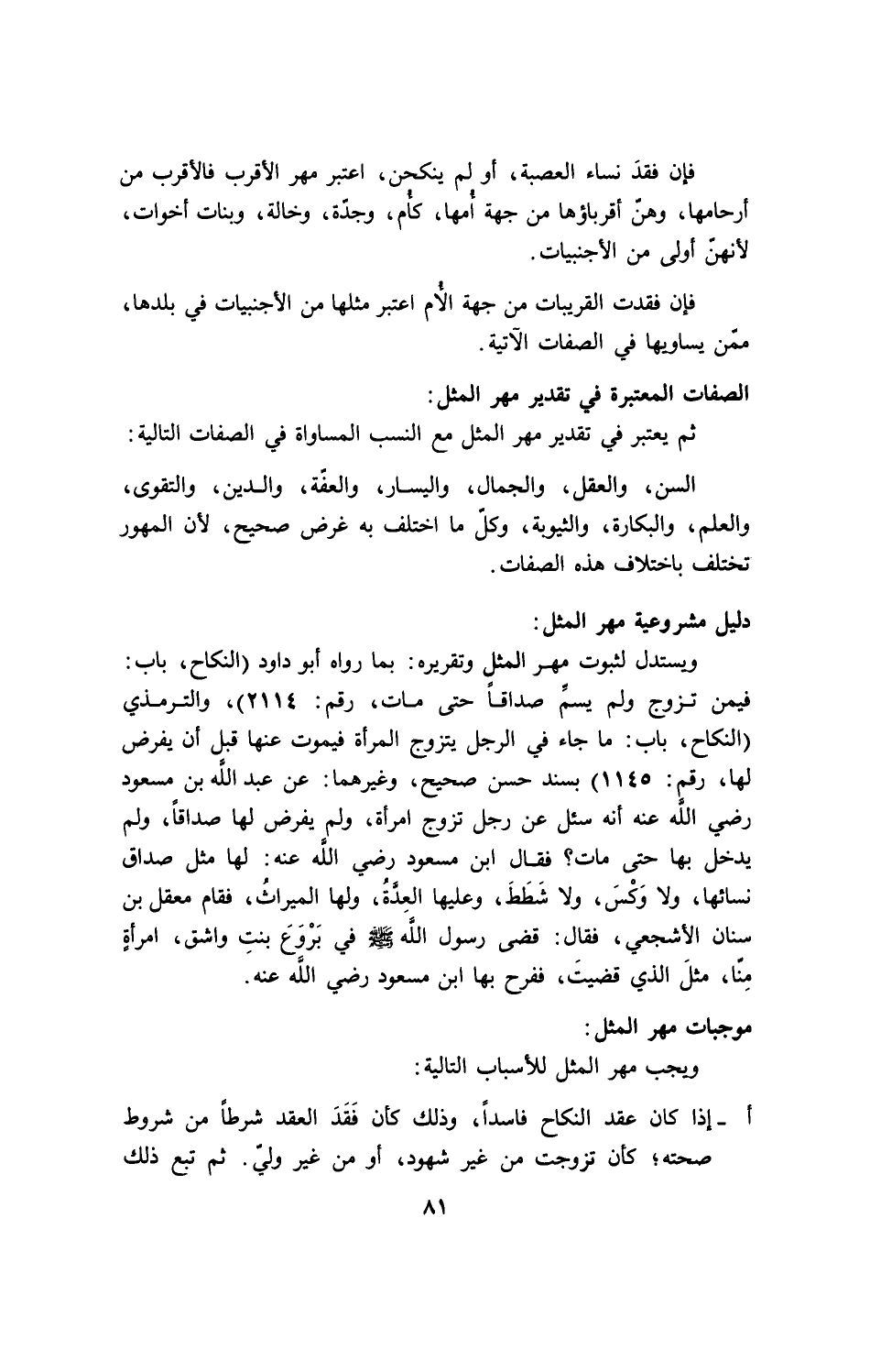 الصفات المعتبرة في تقدير مهر المثل: