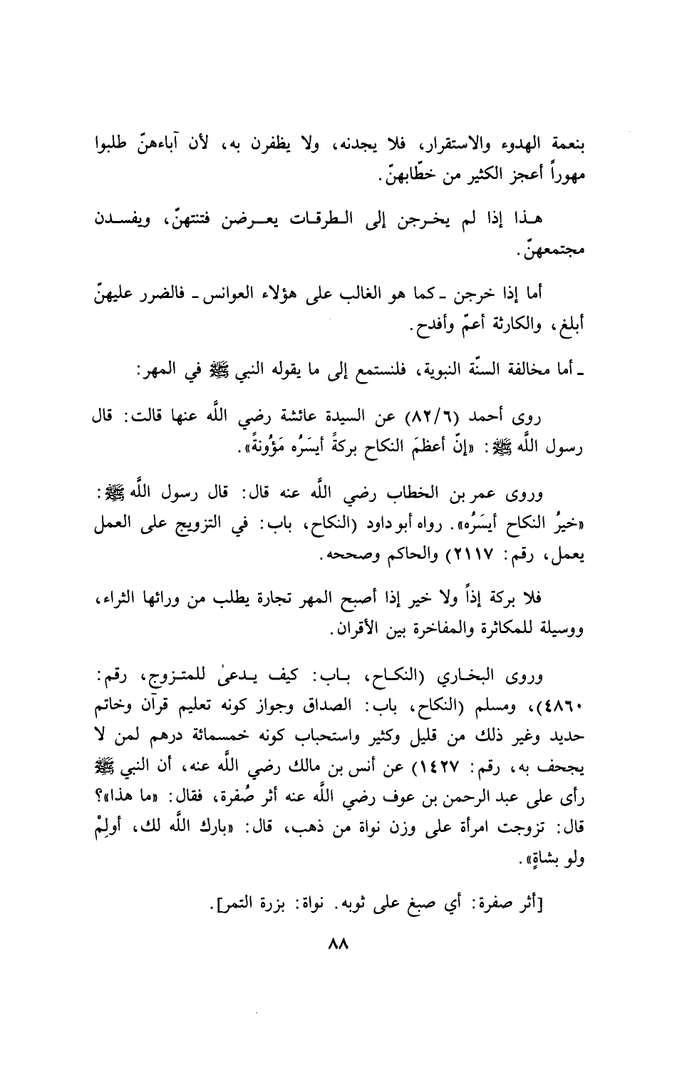 ـ أما مخالفة السنّة النبوية، فلنستمع إلى ما يقوله النبي - صلى الله عليه وسلم - في المهر:
