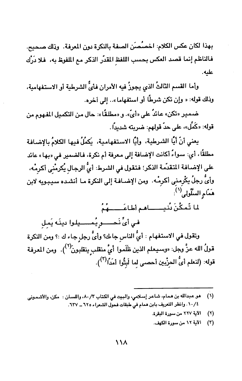 (1) هو عبد الله بن همام، شاعر إسلامي، والبيت في الكتاب 3/ 80، واللسان: مكن، والأشموني 4/ 10. وانظر التعريف بابن همام في طبقات فحول لشعراء 625 - 637.