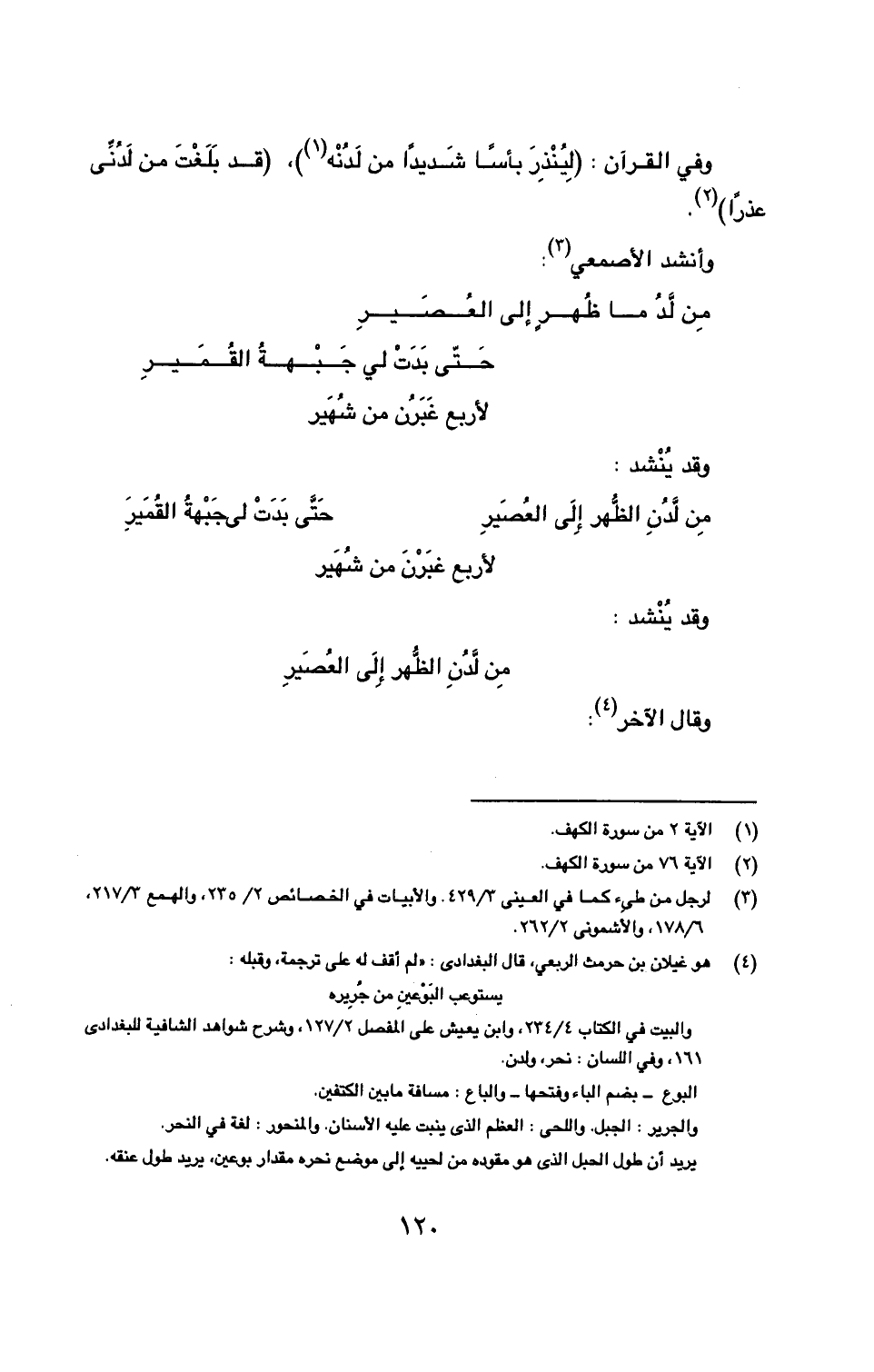 مِن لَّدُنِ الظُّهر إلى العُصَيرِ حَتَّى بَدَتْ لي جَبْهةُ القُمَيرٍ