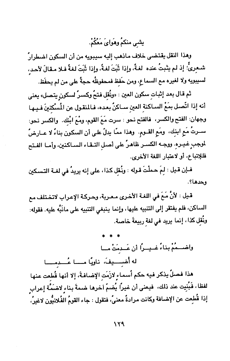 وهذا النقل يقتضي خلاف ما ذهب إليه سيبويه من أن السكون اضطرارٌ شعريٌّ؛ إذ لم يثبتُ عنده لغةً، وإذا ثَبَتَ لغةً، وإذا ثَبَتَ لغةً فلا يقالَ لأحدٍ، لسيبويه من السماعِ، ومن حَفِظ فمحفوظُه حجةٌ على من لم يحفَظ.