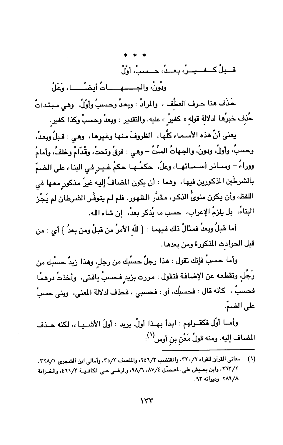 قبلُ كغيرُ، بعدُ، حسبُ، أوَّلُ