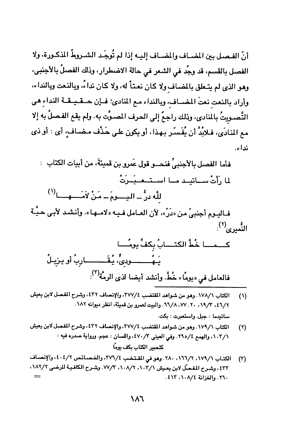 (3) الكتاب 1/ 179، 2/ 166، 280. وهو في المقتضب 4/ 376، والخصائص 2/ 404، والإنصاف 433، وشرح المفصل لابن يعيش 1/ 103، 2/ 108، 3/ 77، وشرح الكافية للرضي 2/ 182، 260. والخزانة 4/ 108، 413.