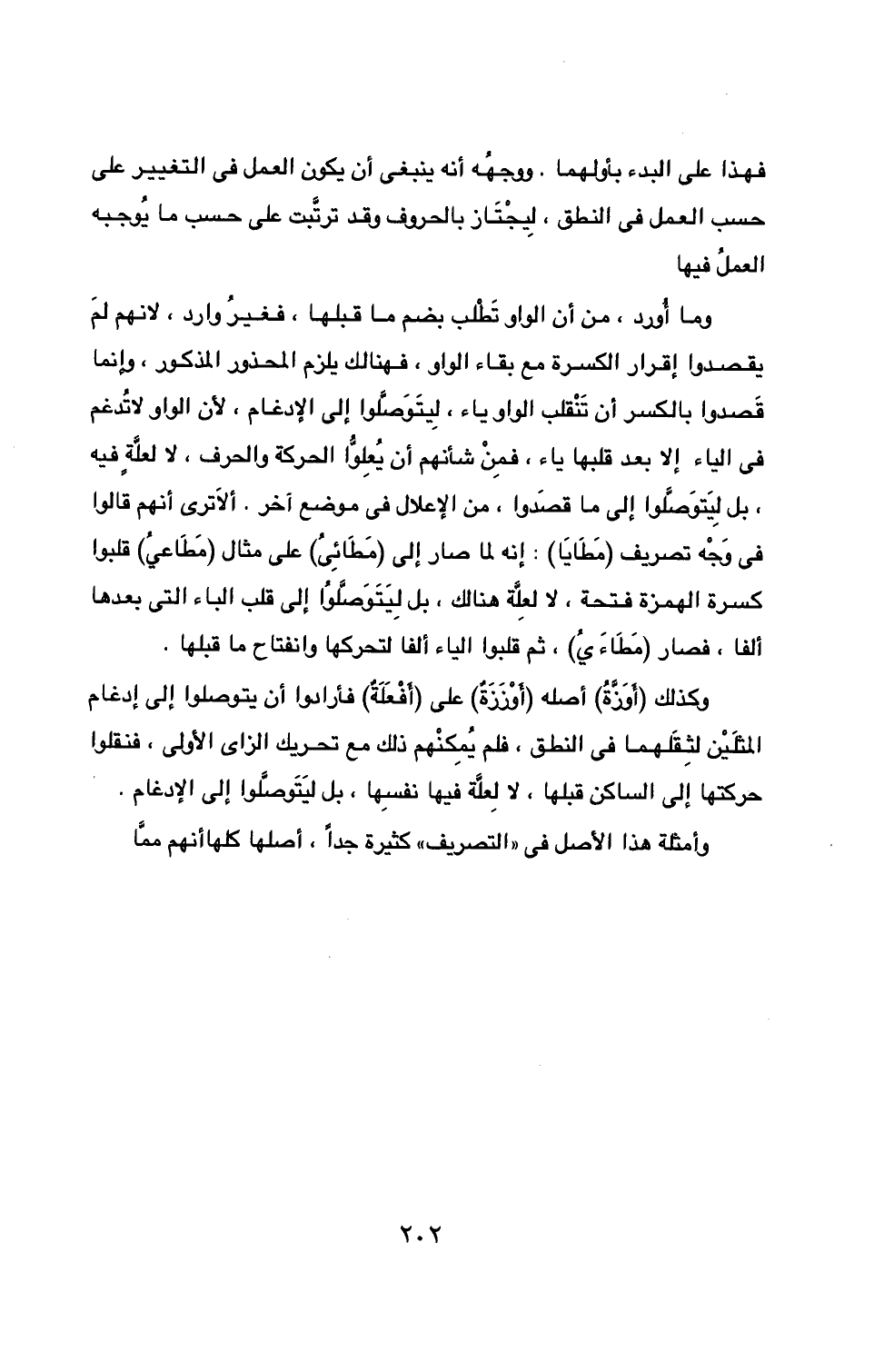 وما أُورد، من أن الواو تَطْلب بضم ما قبلها، فغيرُ وارد، لانهم لمَ يقصدوا إقرار الكسرة مع بقاء الواو، فهنالك يلزم المحذور المذكور، وإنما قَصدوا بالكسر أن تَنْقلب الواو ياء، لِيتَوَصَّلوا إلى الإدغام، لأن الواو لا تُدغم في الياء إلا بعد قلبها ياء، فمِنْ شأنهم أن يُعِلوُّا الحركة والحرف، لا لعلَّةٍ فيه، بل لِيتَوصَّلوا إلى ما قصَدوا، من الإعلال في موضع آخر. ألاَ ترى أنهم قالوا في وَجْه تصريف (مَطَايَا): إنه لما صار إلى (مَطَائِىُ) على مثال (مَطَاعيُ) قلبوا كسرة الهمزة فتحة، لا لعِلَّة هنالك، بل لِيتَوصَّلوا إلى قلب الياء التي بعدها ألفا، فصار (مَطَاءَيُ)، ثم قلبوا الياء ألفا لتحركها وانفتاح ما قبلها.