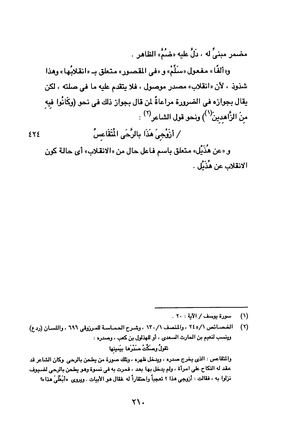 (2) الخصائص 1/ 245، والمنصف 1/ 130، وشرح الحماسة للمرزوقي 696، واللسان (ردع) وينسب لنعيم بن الحارث السعدي، أو للهذلول بن كعب، وصدره: