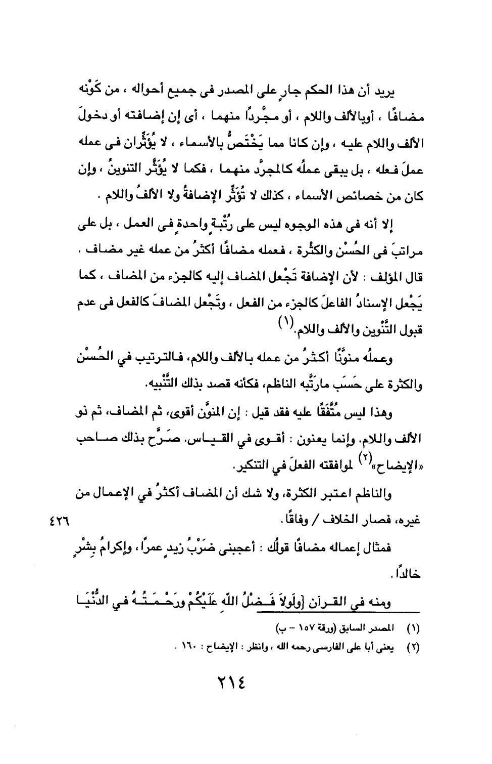 (2) يعني أبا علي الفارسي رحمه الله، وانظر: الإيضاح: 160.