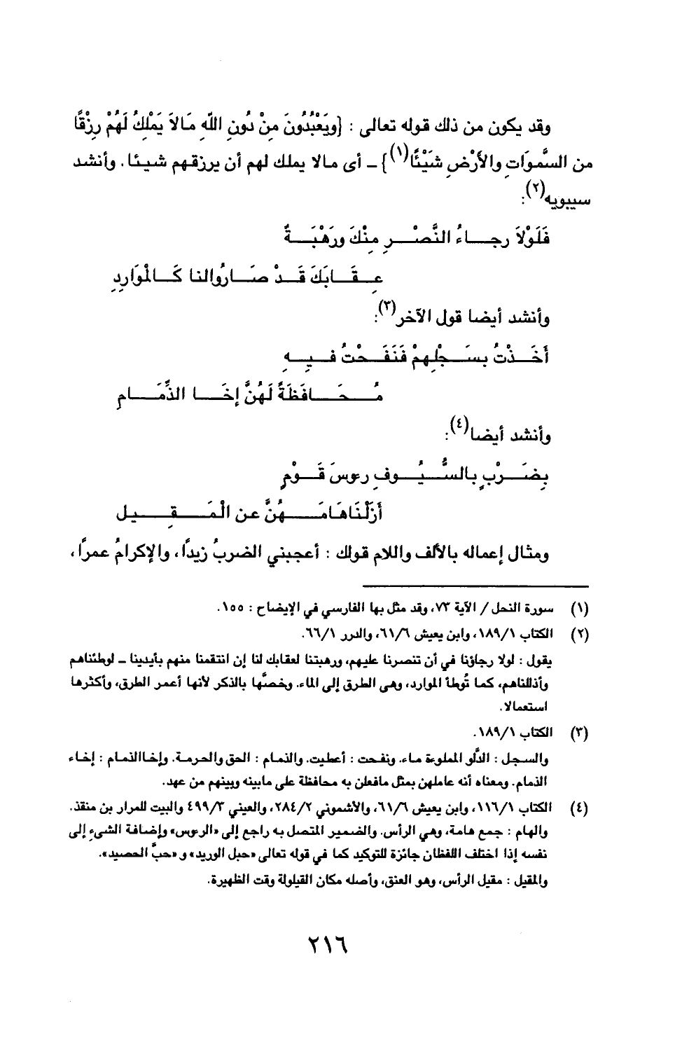 (1) سورة النحل/ الآية 73، وقد مثل بها الفارسي في الإيضاح: 155.
