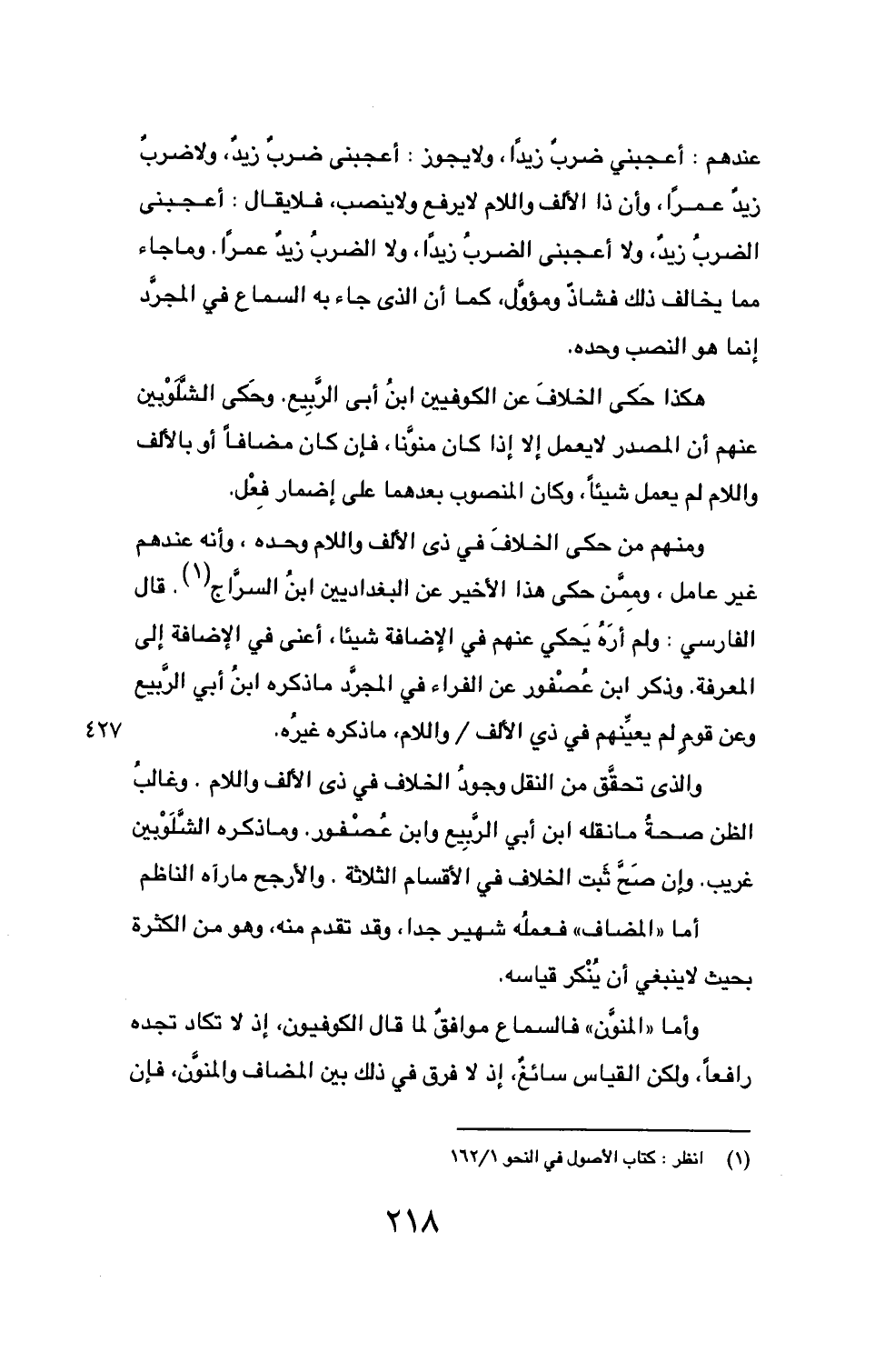 (1) انظر: كتاب الأصول في النحو 1/ 162.