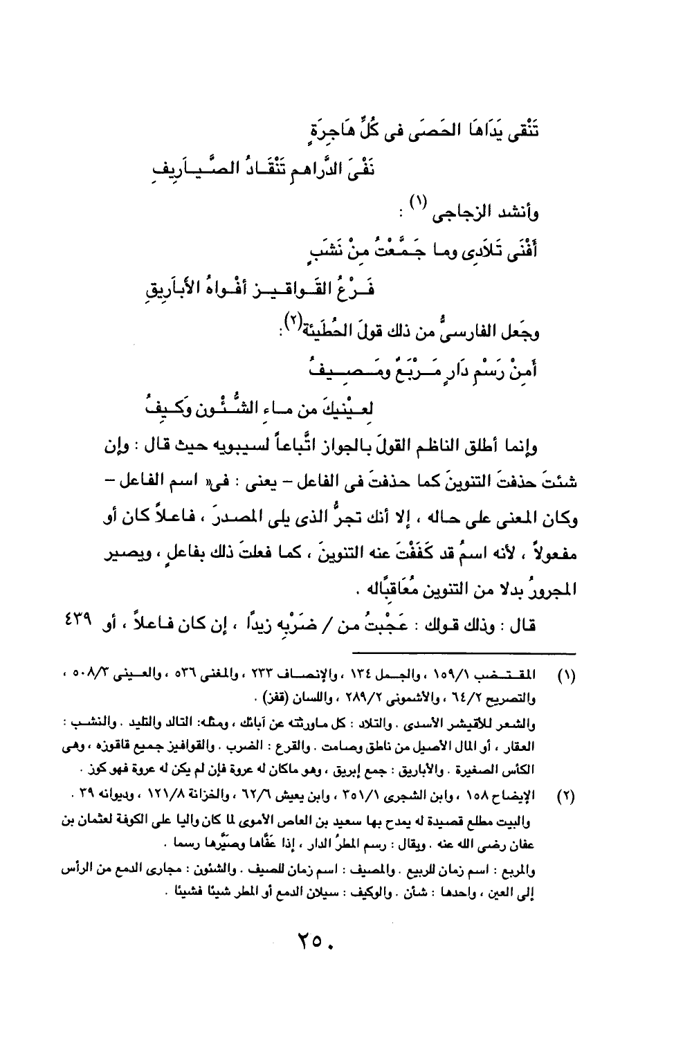 (2) الإيضاح 158، وابن الشجري 1/ 351، وابن يعيش 6/ 62، والخزانة 8/ 121، وديوانه 39. والبيت مطلع قصيدة له يمدح بها سعيد بن العاص الأموي لما كان واليا على الكوفة لعثمان بن عفان رضى الله عنه. ويقال: رسم المطرُ الدار، إذا عَفَّاها وصَيَّرها رسما.