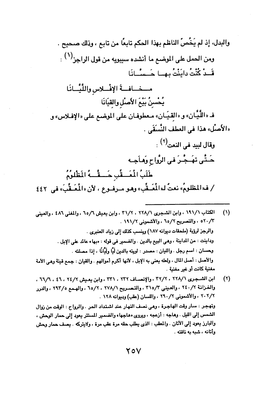 فـ ((اللَّيَّان)) و ((الِقيَان)) معطوفان على الموضع على ((الإفلاس)) و ((الأصْل)) هذا في العطف النَّسَقَي.
