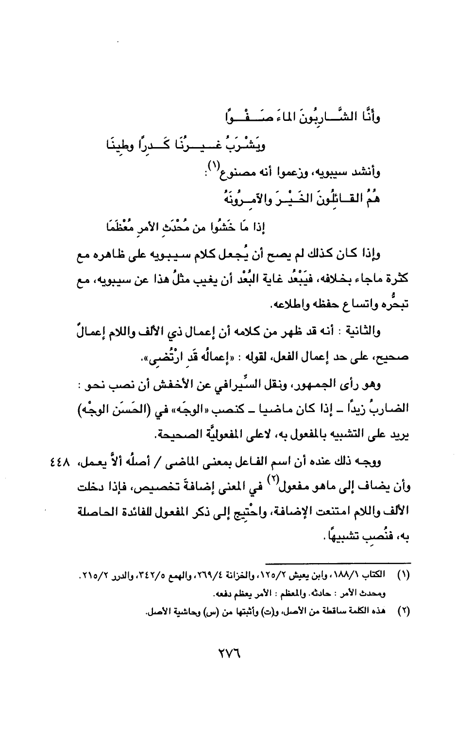 وإذا كان كذلك لم يصح أن يُجعل كلام سيبويه على ظاهره مع كثرة ما جاء بخلافه، فيَبْعُد غاية البُعْد أن يغيب مثلُ هذا عن سيبويه، مع تبحُّره واتساع حفظه واطلاعه.