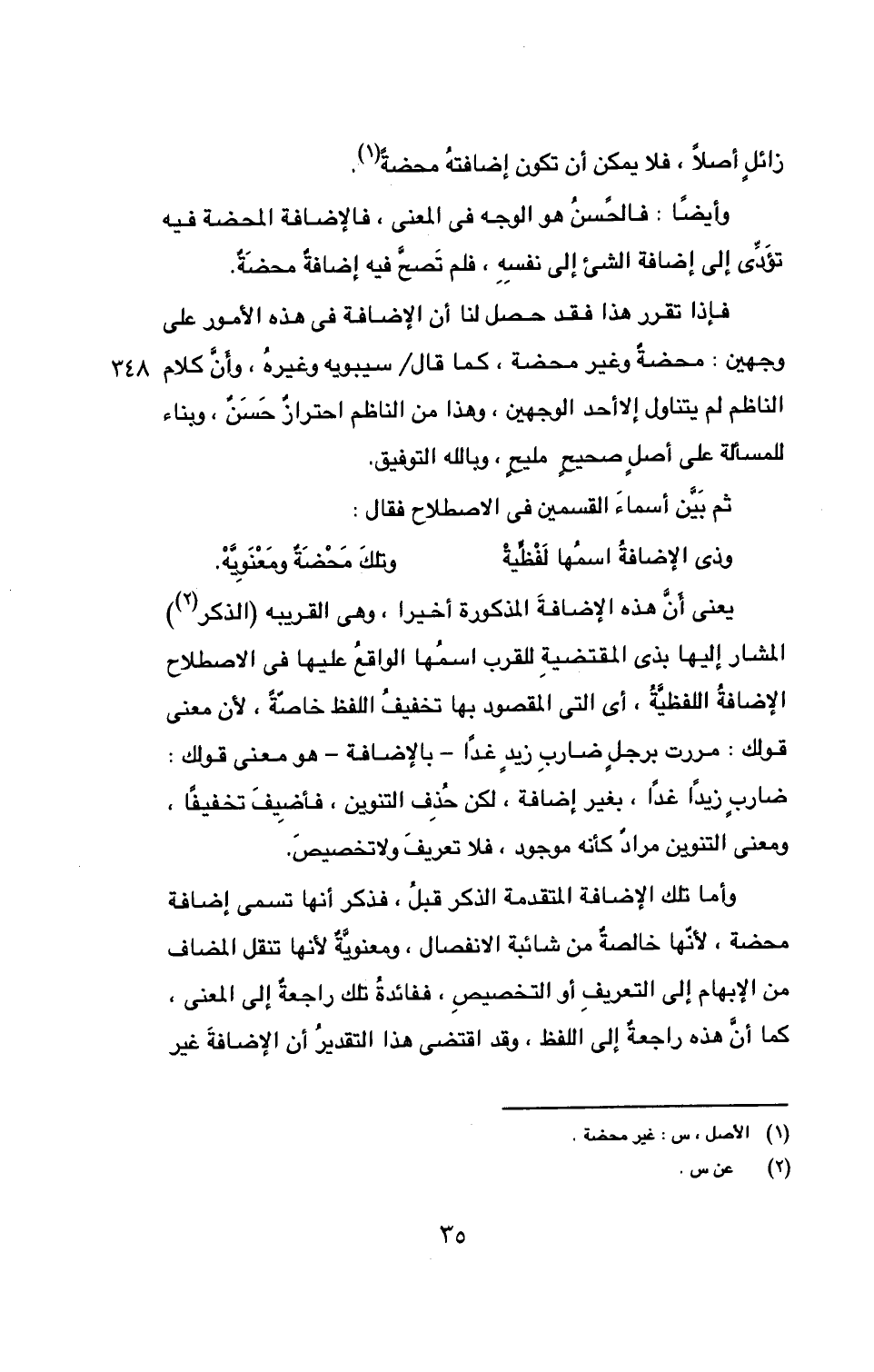 فإذا تقرر هذا فقد حصل لنا أن الإضافة في هذه الأمور على وجهين: محضةٌ وغير محضة،
