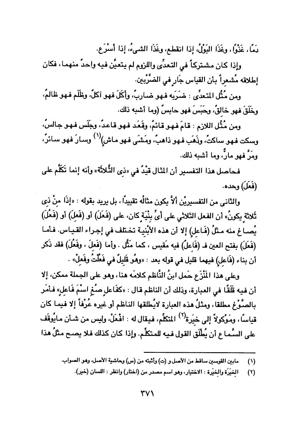 وإذا كان مشتركاً في التعدِّي واللزوم لم يتعيَّن فيه واحدٌ منهما، فكان إطلاقه مُشعِراً بأن القياس جَارٍ في الضَّرْبين.