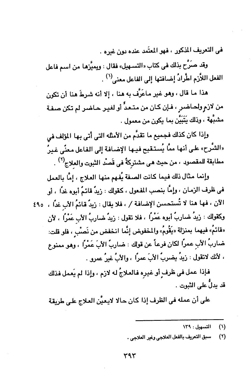 وقد صَرَّح بذلك في كتاب ((التسهيل)) فقال: ويميَّزها من اسم فاعل الفعل اللَّازم اطَّرادُ إضافتها إلى الفاعل معنى (1).