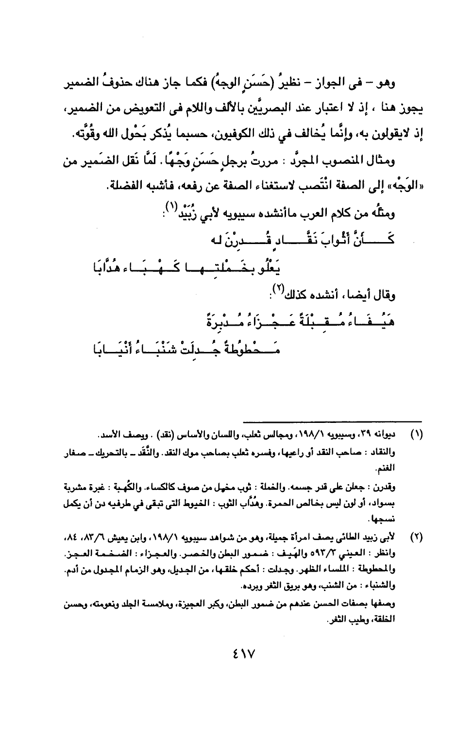 ومثلُه من كلام العرب ما أنشده سيبويه لأبي زُبَيْد (1):