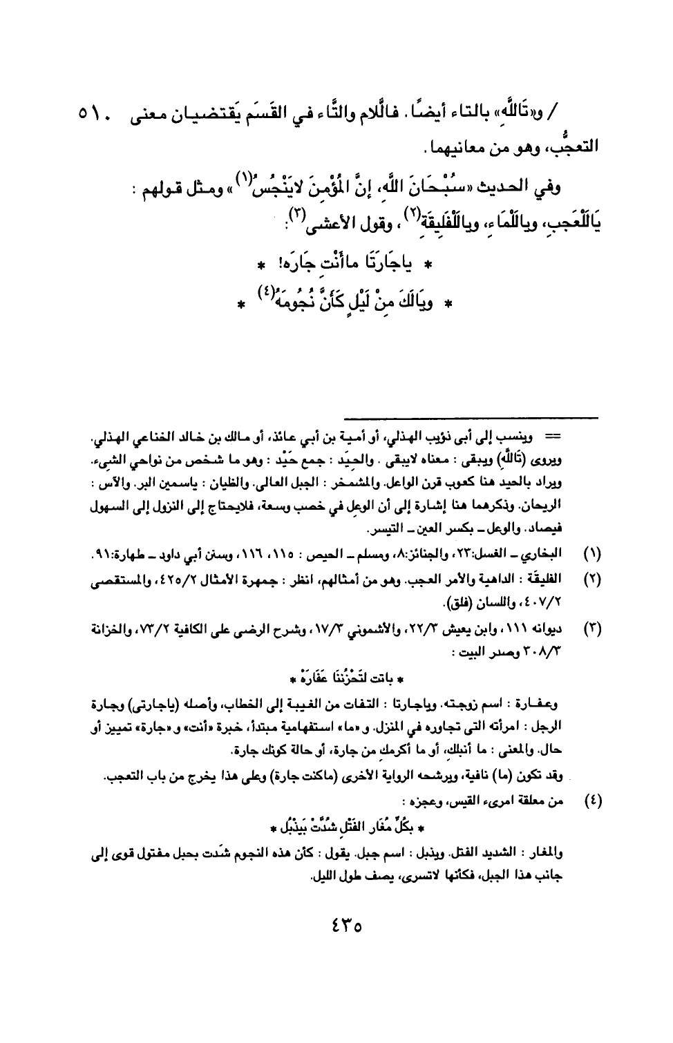 / و ((تَاللَّهِ)) وبالتاء أيضاً. فالَّلام والتَّاء في القَسَم يَقتضيان معنى التعجُّب، وهو من ... 510 معانيها.
