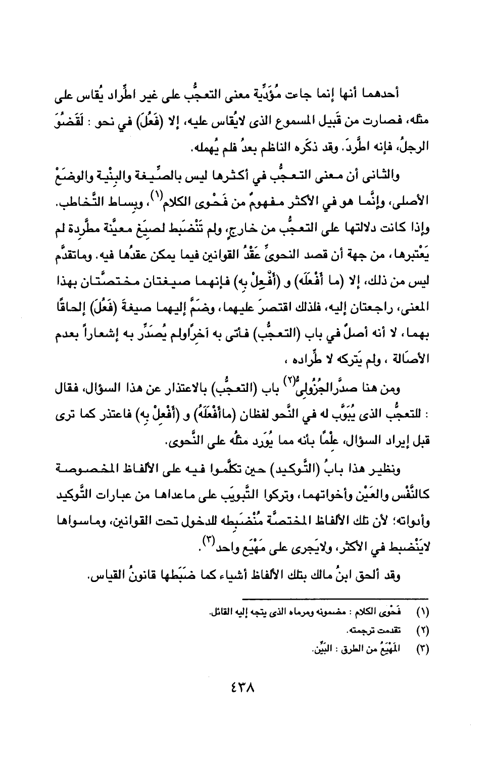ومن هنا صدَّر الجُزُولِيُّ (2) باب (التعجُّب) بالاعتذار عن هذا السؤال، فقال: للتعجُّب الذي يُبَوَّب له في النَّحو لفظان (ما أَفْعَلَهُ) و (أَفْعِلْ بِه) فاعتذر كما ترى قبل ايراد السؤال، عِلْماً بأنه مما يُوَرد مثلُه على النَّحوي.