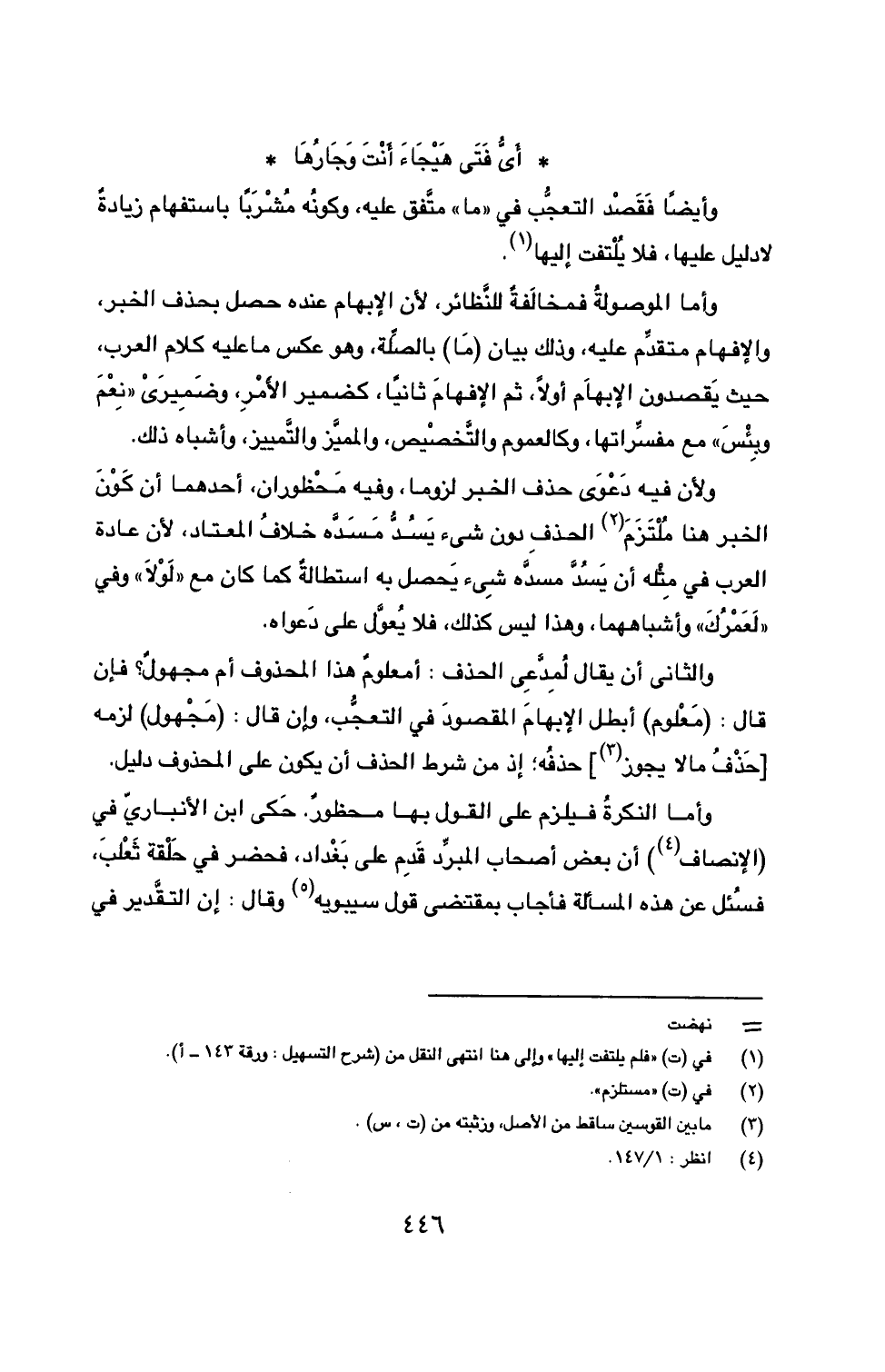 (1) في (ت) ((فلم يلتفت إليها)) وإلى هنا انتهى النقل من (شرح التسهيل: ورقة 143 - أ).
