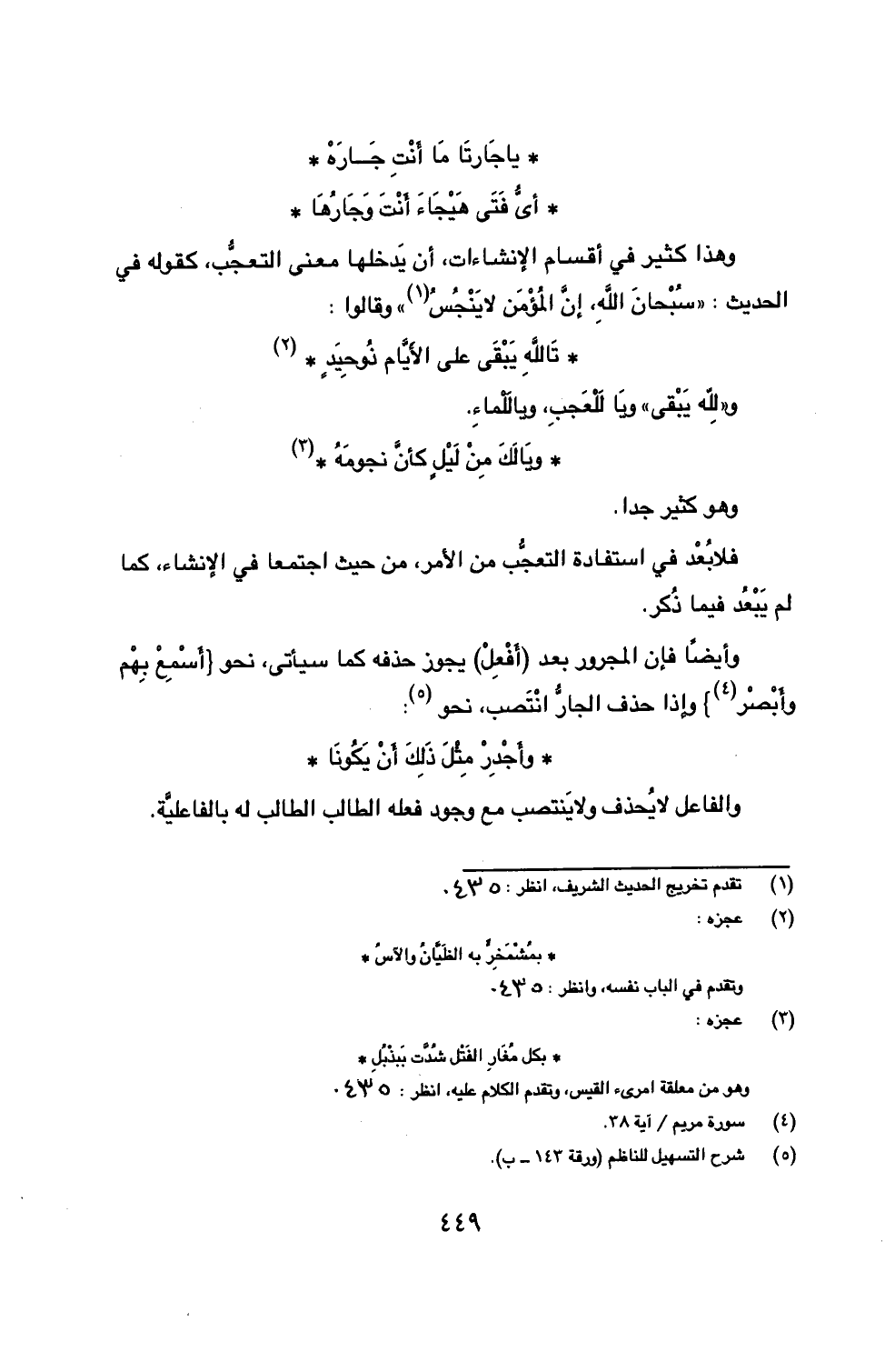 وهذا كثير في أقسام الإنشاءات، أن يَدخلها معنى التعجُّب، كقوله في الحديث: ((سُبْحانَ اللهِ، إنَّ المُؤْمَن لا يَنْجُسُ (1))) وقالوا: