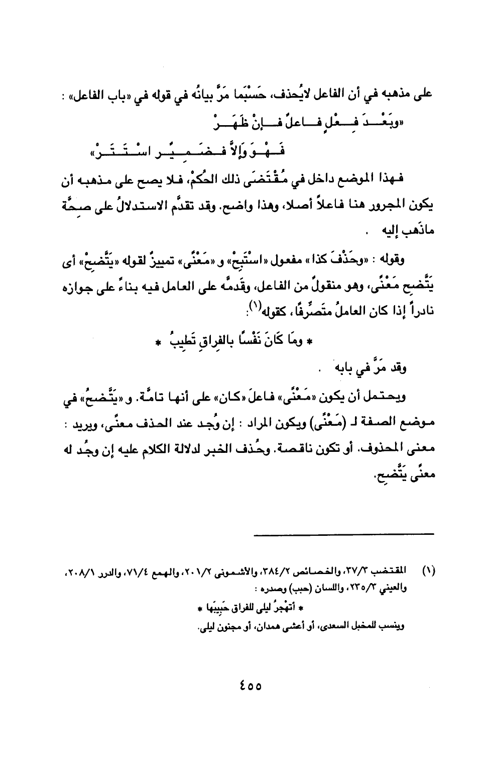 فهذا الموضع داخل في مُقْتَضَى ذلك الحُكْم، فلا يصح على مذهبه أن يكون المجرور هنا فاعلاً أصلا، وهذا واضح. وقد تقدَّم الاستدلالُ على صحَّة ما ذَهب إليه.