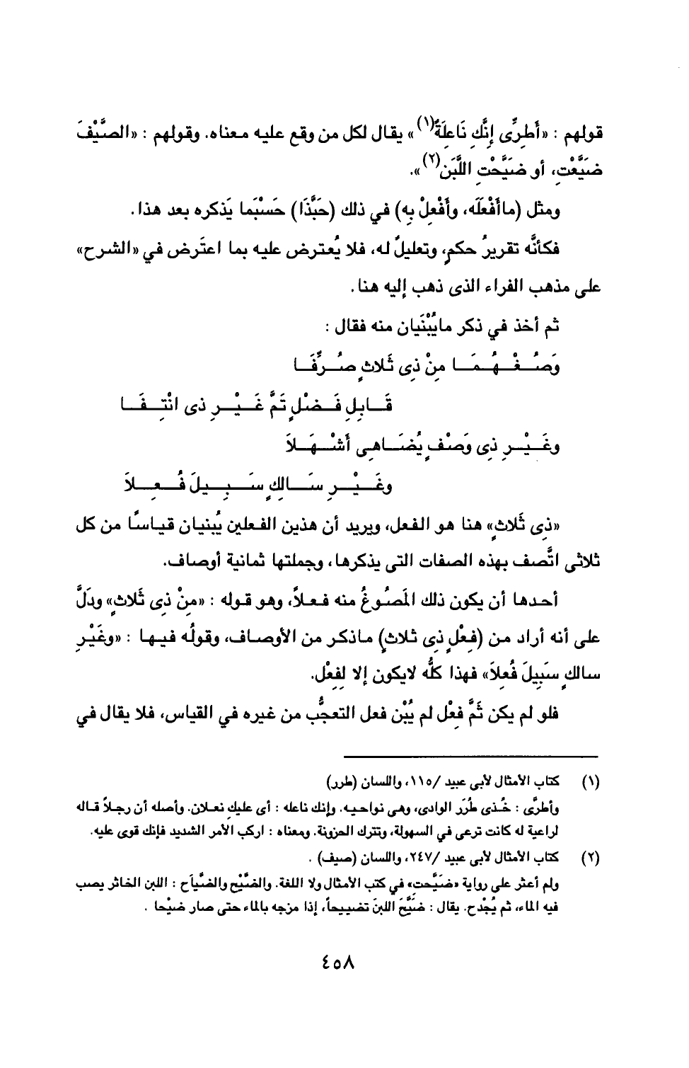 وَصُغْهُمَا مِنْ ذِي ثَلاثٍ صُرِّفَا ... قَابِلِ فَضْلٍ تَمَّ غَيْرِ ذي انْتِفَا