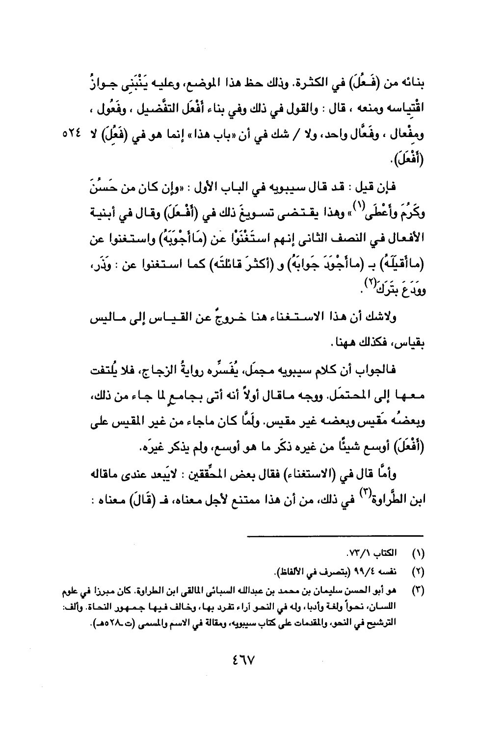 (3) هو ابو الحسن سليمان بن محمد بن عبد الله السبائي المالقي ابن الطراوة. كان مبرزا في علوم اللسان، نحواً ولغة وأدبا، وله في النحو آراء تفرد بها، وخالف فيها جمهور النحاة. وألف: الترشيح في النحو، والمقدمات على كتاب سيبويه، ومقالة في الاسم والمسمى (ت- 528 هـ).