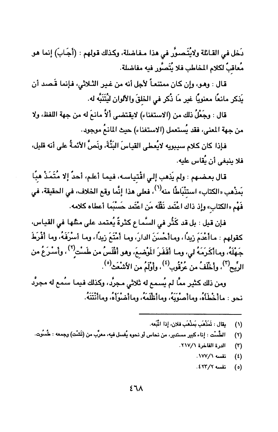 قال بعضهم: ولم يَذهب إلى اقْتِياسه، فيما أعلم، أحدٌ إلا مُتَمَذْهِباً بَمذْهب ((الكتاب)) استِنْبَاطاً منه (1)، فعلى هذا إنَّما وقع الخلاف، في الحقيقة، في فَهْم ((الكتاب)) وإذ ذاك اعْتَمد نَقْلَه مَن اعْتَمد حَسْبَما أعطاه كلامه.