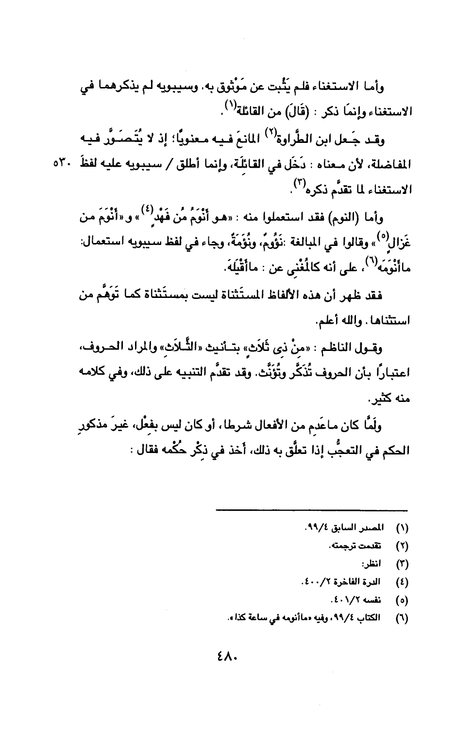 وقد جَعل ابن الطَّراوة (2) المانعَ فيه معنوياً؛ إذ لا يُتَصَّور فيه المفاضلة، لأن معناه: دَخَل في القائِلَة، وإنما أطلق/ سيبويه عليه لفظَ الاستغناء لما تقدم ذكره (3). ... 530