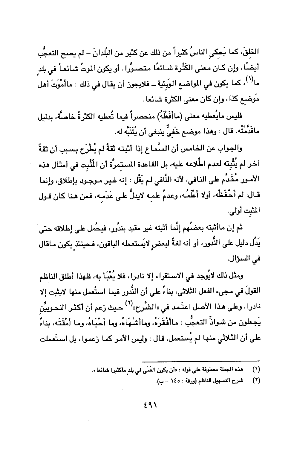 ثم إن ما أثبته بعضُهم إنَّما أثبته غير مقيد بندُور، فيحُمل على إطلاقه حتى يَدُل دليل على الندُّور، أو أنه لغةٌ لبعضٍ لا يَستعمله الباقون، فحينئذٍ يكون ما قال في السؤال.