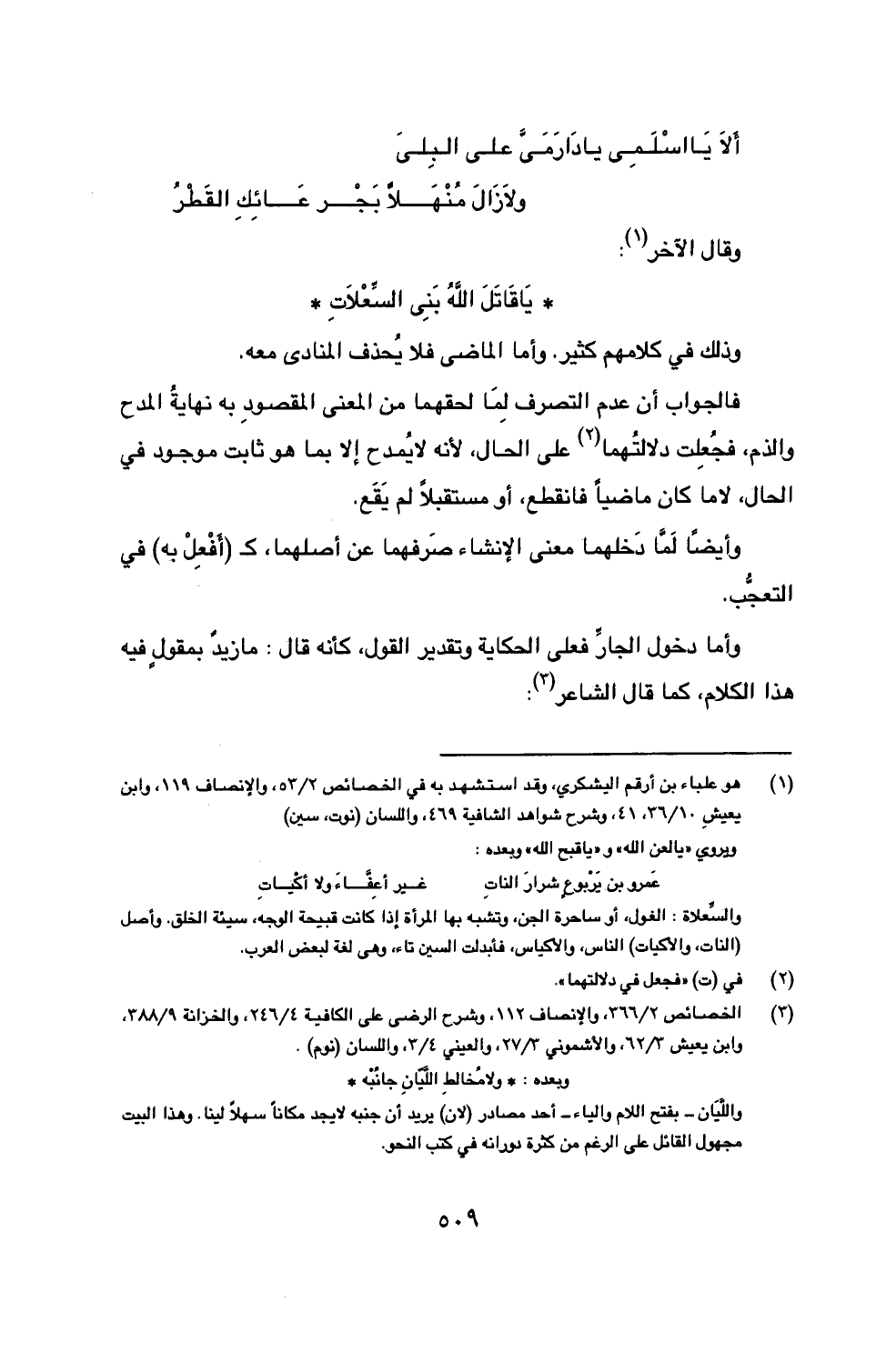 (3) الخصائص 2/ 366، والإنصاف 112، وشرح الرضي على الكافية 4/ 246، والخزانة 9/ 388، وابن يعيش 3/ 62، والأشموني 3/ 27، والعيني 4/ 3، واللسان (نوم).
