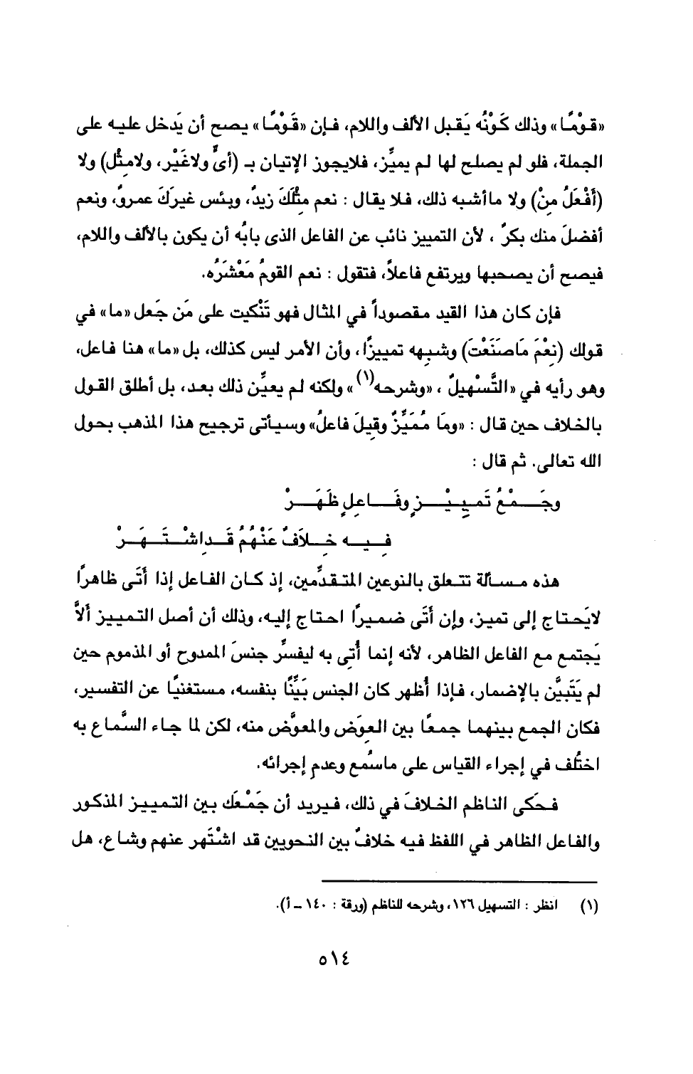 (1) انظر: التسهيل 126، وشرحه للناظم (ورقة: 140 - أ).