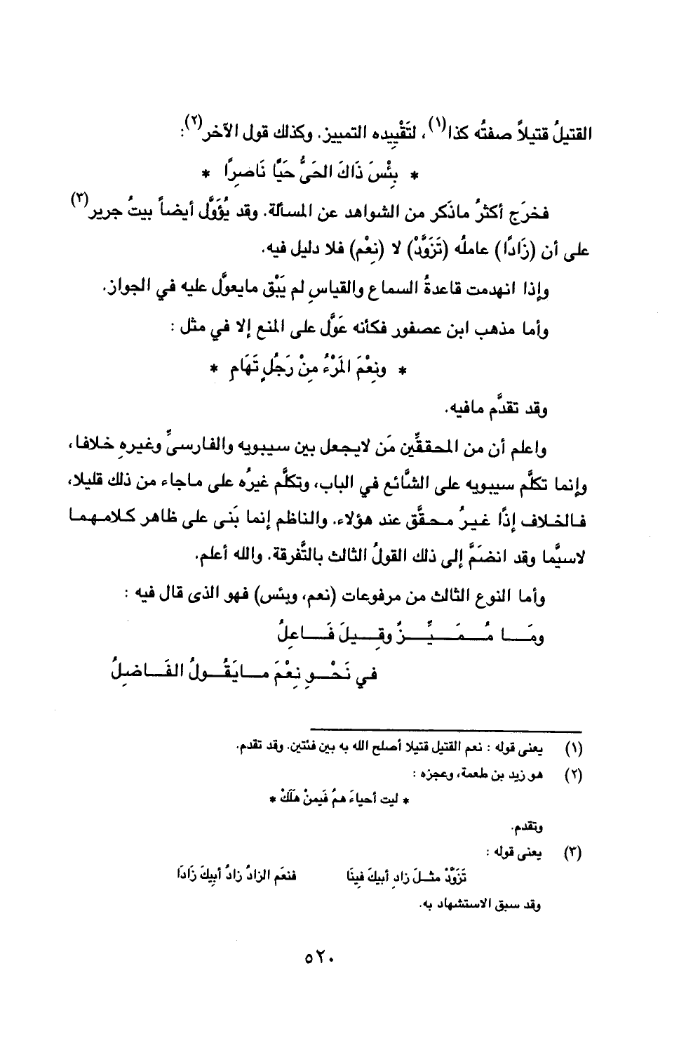 فخرَج أكثر ما ذَكر من الشواهد عن المسالة. وقد يُؤَوَّل أيضاً بيتُ جرير (3) على أن (زَاداً) عاملُه (تَزَوَّدْ) لا (نِعْم) فلا دليل فيه.