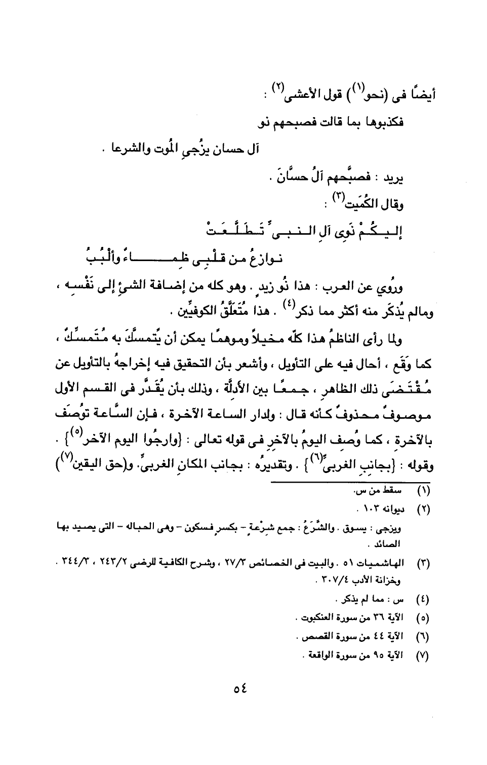(3) الهاشميات 51. والبيت في الخصائص 3/ 27، وشرح الكافية للرضي 2/ 243، 3/ 344. وخزانة الأدب 4/ 307.