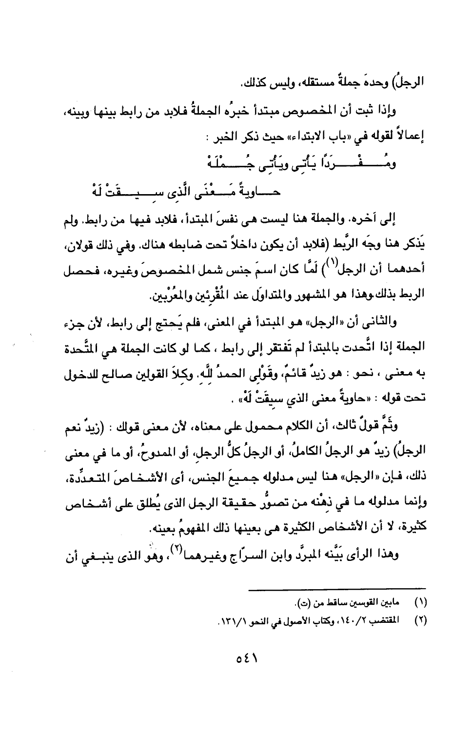(2) المقتضب 2/ 140، وكتاب الأصول في النحو 1/ 131.