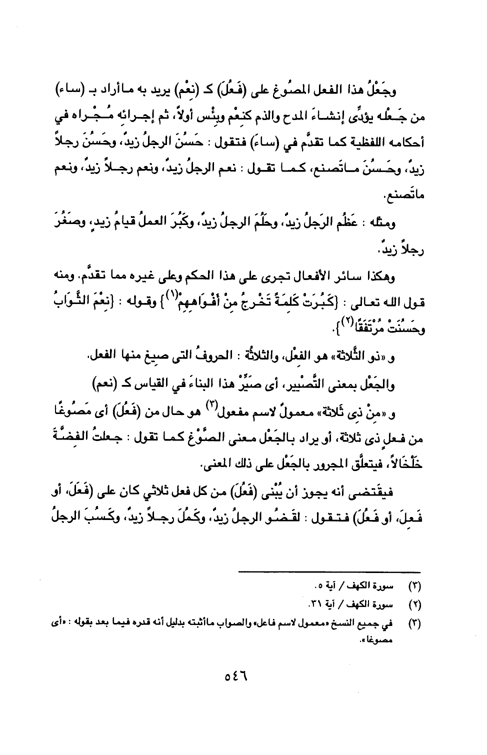 هكذا سائر الأفعال تجري على هذا الحكم وعلى غيره مما تقدم. ومنه قول الله تعالى: {كَبُرَتْ كَلِمَةً تَخْرجُ مِنْ أَفْوَاهِهِمْ (1)} وقوله: {نِعْمَ الثَّوَابُ وحَسُنَتْ مُرْتَفَقاً (2)}.